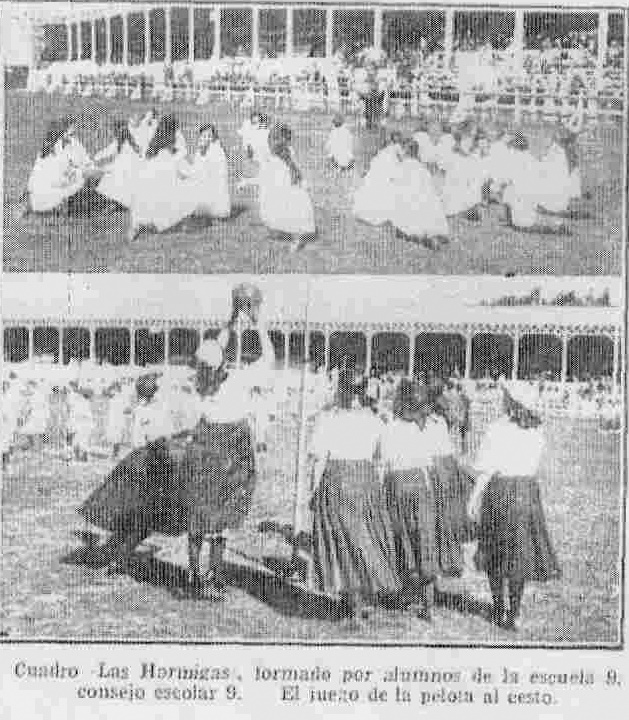 (Abajo izquierda) "Las autoridades nacionales y algunos invitados, presenciando los ejercicios de los boys-scouts, en los jardines de la Sportiva."